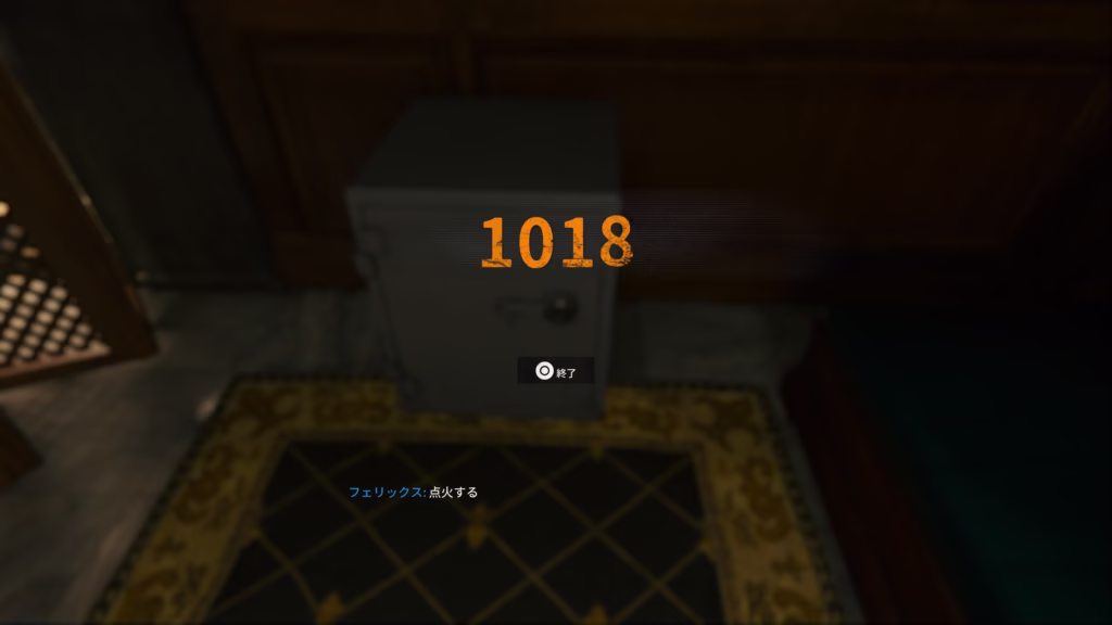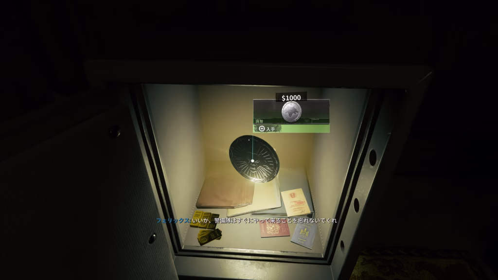 仕掛けたら先ほどのエレベーター裏側にある金庫にラジオの番号を入れ、キャッシュを獲得します。